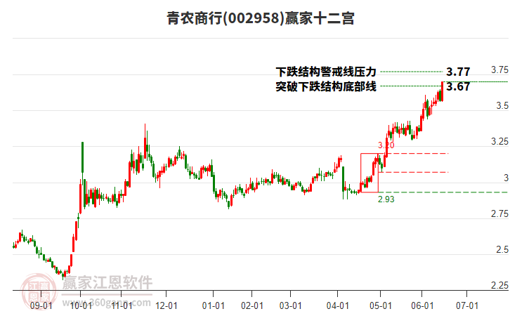 002958青農(nóng)商行處于贏家江恩多頭次主線形態(tài),7月7日發(fā)出江恩筑底信號后,經(jīng)過123日,今日形成短期筑頂信號,短期多頭趨勢已被破壞,中期多頭趨勢延續(xù),但長期處于回調(diào)中。青農(nóng)商行今日高開0.0元,截止