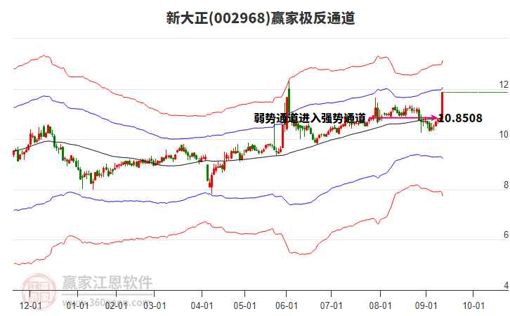 依據(jù)贏家江恩系統(tǒng)趨勢工具極反通道分析判斷新大正002968運(yùn)行在生命線以下弱勢區(qū)域,根據(jù)規(guī)則該股短線輕倉參與,股價(jià)跌至弱勢外軌線后波段再結(jié)合其它工具信號建倉。應(yīng)用口訣是:生命線上強(qiáng)勢走,生命線下難抬頭;紅黃兩條外軌線,壓力支撐顯勢頭。