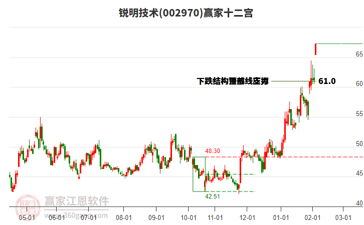 個(gè)股2026年2月5日突破強(qiáng)勢(shì)外軌線由超強(qiáng)通道進(jìn)入極強(qiáng)區(qū)域,目前已成為市場(chǎng)中少數(shù)強(qiáng)勢(shì)股,并延續(xù)短期上漲趨勢(shì),不斷提高止盈位保護(hù)受益,上方壓力可借助江恩空間工具分析預(yù)測(cè)。