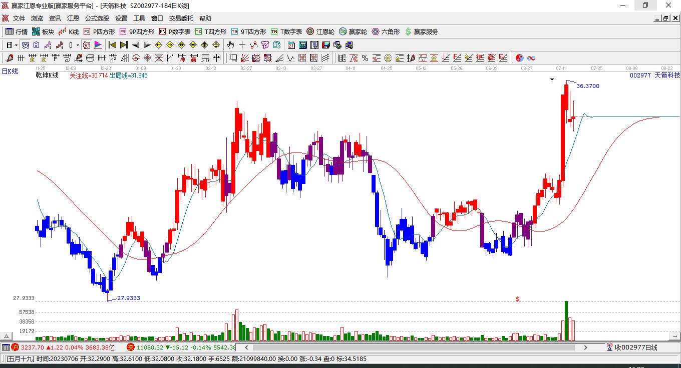 天箭科技今日漲停,報(bào)收于:37.39元/股 漲幅10.0%
