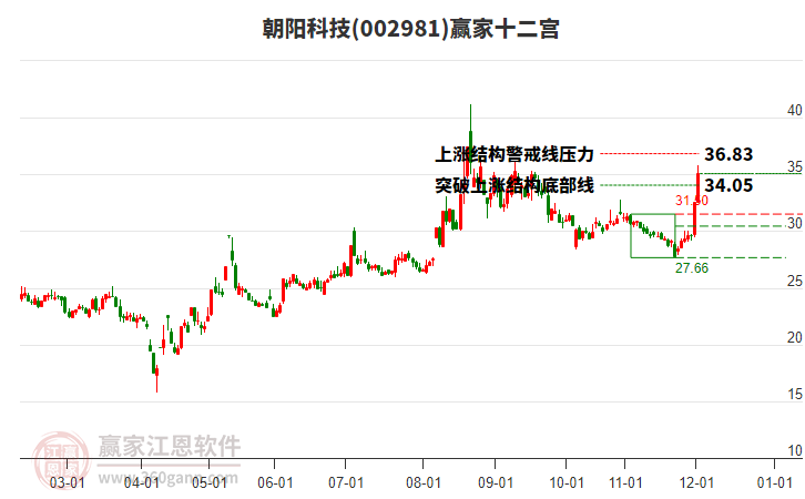 002981朝陽(yáng)科技處于贏家江恩多頭主線形態(tài),今日重心上移,短期持續(xù)上漲,形成筑底信號(hào),從11月21日形成中期底分型后,行情經(jīng)歷一波上漲,突破前高形成中期初次筑底信號(hào),長(zhǎng)期處于多頭回調(diào)趨勢(shì)。朝陽(yáng)科技截