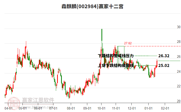 森麒麟(002984)處于贏家江恩空頭中期反彈形態(tài),今日重心上移,短期持續(xù)上漲,從10月17日形成中期底分型后,行情經(jīng)歷一波上漲,突破前高形成中期初次筑底信號,長期處于空頭反彈趨勢。森麒麟今日低開,截