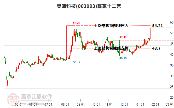 奧??萍?02993低開(kāi)收漲停,受贏家十二宮上漲結(jié)構(gòu)頂部線壓制