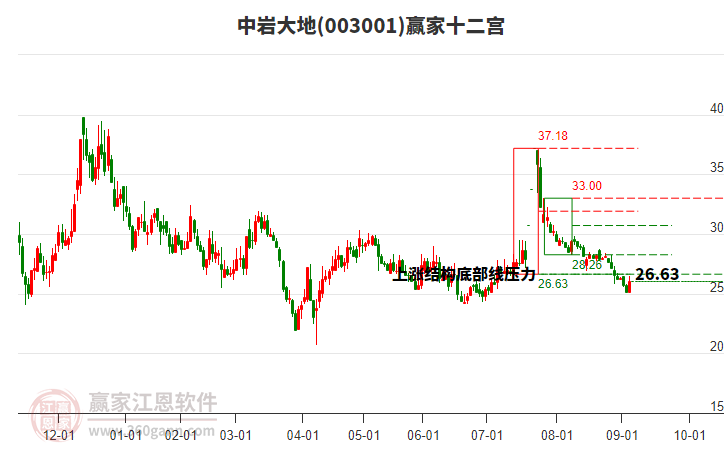 003001中巖大地處于贏家江恩空頭主線形態(tài),1月5日發(fā)出江恩筑底信號后,經(jīng)過17日,今日形成短期筑頂信號,短期多頭趨勢已被破壞,中期多頭反彈趨勢延續(xù),但長期處于下跌中。中巖大地今日跳空低開,目前K線