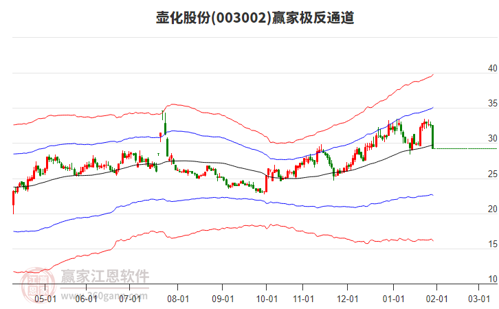 依據(jù)贏家江恩系統(tǒng)趨勢(shì)工具極反通道分析判斷壺化股份003002運(yùn)行在生命線以下弱勢(shì)區(qū)域,根據(jù)規(guī)則該股短線輕倉參與,股價(jià)跌至弱勢(shì)外軌線后波段再結(jié)合其它工具信號(hào)建倉。應(yīng)用口訣是:生命線上強(qiáng)勢(shì)走,生命線下難抬頭;紅黃兩條外軌線,壓力支撐顯勢(shì)頭。
