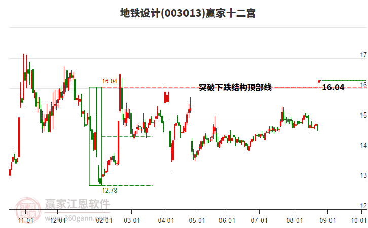 003013地鐵設(shè)計(jì)處于贏家江恩多頭中期回調(diào)形態(tài),10月14日發(fā)出江恩筑底信號(hào)后,經(jīng)過(guò)35日,今日形成短期筑頂信號(hào),短期多頭趨勢(shì)已被破壞,中期雖然處于下跌中,但長(zhǎng)期多頭趨勢(shì)延續(xù)。地鐵設(shè)計(jì)今日跳空低開(kāi),