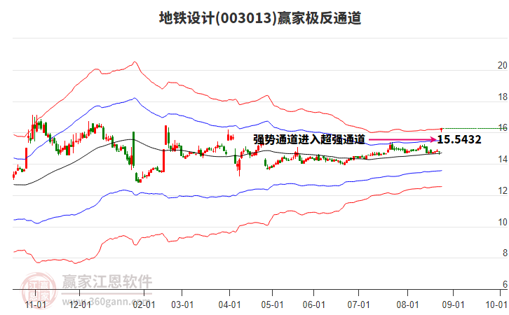 依據(jù)贏家江恩系統(tǒng)趨勢(shì)工具極反通道分析判斷地鐵設(shè)計(jì)003013運(yùn)行在生命線以下弱勢(shì)區(qū)域,根據(jù)規(guī)則該股短線輕倉(cāng)參與,股價(jià)跌至弱勢(shì)外軌線后波段再結(jié)合其它工具信號(hào)建倉(cāng)。應(yīng)用口訣是:生命線上強(qiáng)勢(shì)走,生命線下難抬頭;紅黃兩條外軌線,壓力支撐顯勢(shì)頭。
