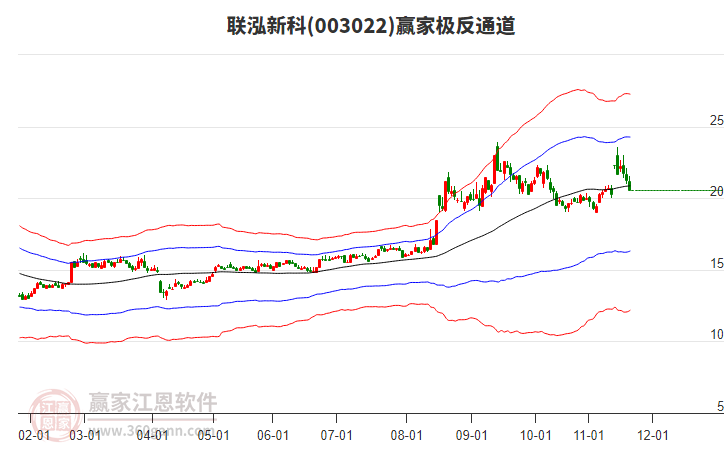 周五003022聯(lián)泓新科最高價(jià)22.3挑戰(zhàn)了贏家極反通道工具藍(lán)色外軌線,受到藍(lán)色外軌線強(qiáng)力壓制,最終收盤停留在在藍(lán)色外軌線與生命線上方的強(qiáng)勢通道區(qū)域。003022聯(lián)泓新科近10個(gè)交易日漲幅9.18%。