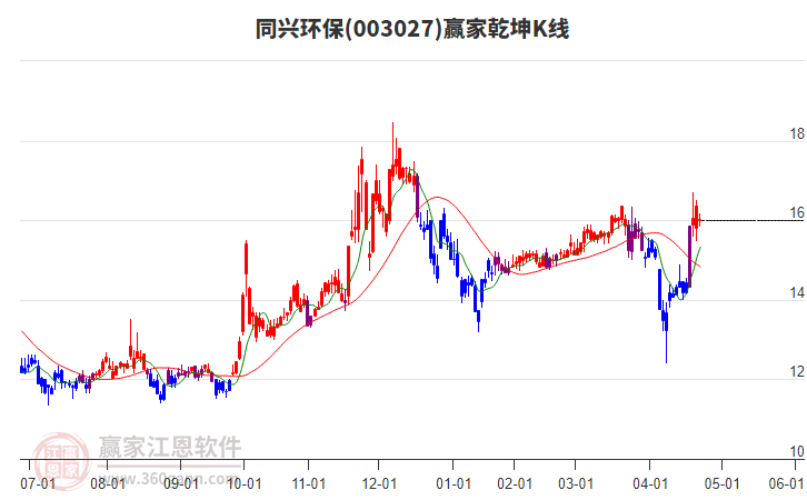 同興科技003027最高價上穿上方紅色外軌線 微漲0.67%