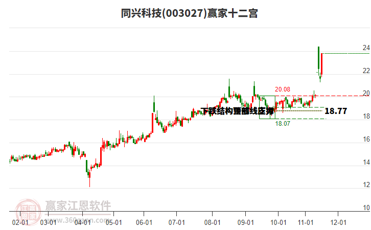 當前股價位于前期2025年12月5日形成的下跌結(jié)構(gòu)頂部線23.33與警戒線21.98之間,今日微漲0.67%,以22.67元上影小陽線收盤。依據(jù)贏家十二宮多空能量守恒規(guī)則,下跌結(jié)構(gòu)警戒線是多空能量平衡爭奪點,突破或跌破往往意味著平衡打破。當前股價若能站穩(wěn)警戒線位置,多方能量有望主導(dǎo)上攻,向上頂部線位置尋找多空能量平衡位。如股價不能有效站穩(wěn)警戒線,則空方能量主導(dǎo)下探,向底部線附近尋找新的多空能量平衡位。