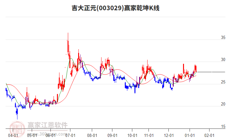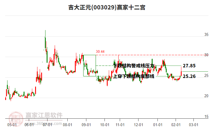 吉大正元(003029)處于贏家江恩多頭主線(xiàn)形態(tài),今日重心上移,形成底分型,12月8日發(fā)出中期江恩筑頂信號(hào)后,經(jīng)過(guò)8日,今日中期形成江恩筑底信號(hào),屬中期多頭預(yù)警,長(zhǎng)期處于多頭回調(diào)趨勢(shì)。吉大正元今日跳空