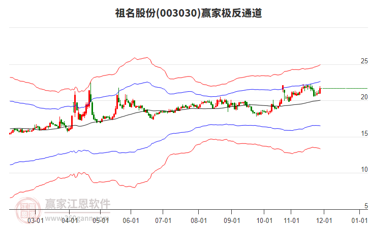 依據(jù)贏家江恩系統(tǒng)趨勢工具極反通道分析判斷祖名股份003030運(yùn)行在生命線以下弱勢區(qū)域,根據(jù)規(guī)則該股短線輕倉參與,股價(jià)跌至弱勢外軌線后波段再結(jié)合其它工具信號建倉。應(yīng)用口訣是:生命線上強(qiáng)勢走,生命線下難抬頭;紅黃兩條外軌線,壓力支撐顯勢頭。