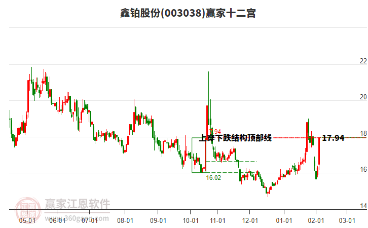 2月13日股價下穿前期2025年10月22日形成的下跌結(jié)構(gòu)頂部線,以光頭小陰線收盤,小幅下跌2.82%,近期高點為2月5日,跌至今日,持續(xù)6天,跌幅10.66%。依據(jù)贏家十二宮多空能量守恒規(guī)則,當(dāng)前股價下跌若不能收復(fù)下跌結(jié)構(gòu)頂部線17.94,多方能量持續(xù)萎縮,空方動能充足,將會進一步下探警戒線16.63,若能再次收復(fù)下跌結(jié)構(gòu)頂部線,有望再度展開上攻。