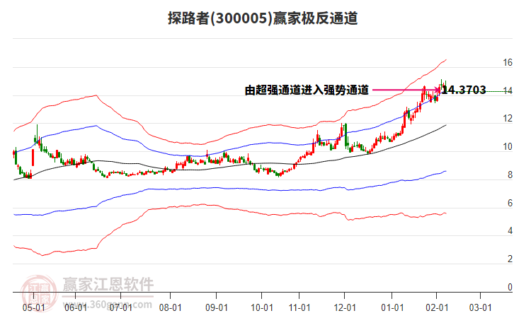 目前300005探路者最高價(jià)14.49挑戰(zhàn)了贏家極反通道工具藍(lán)色外軌線,受到藍(lán)色外軌線強(qiáng)力壓制,最終收盤停留在在藍(lán)色外軌線與生命線上方的強(qiáng)勢(shì)通道區(qū)域。300005探路者近10個(gè)交易日漲幅7.68%。