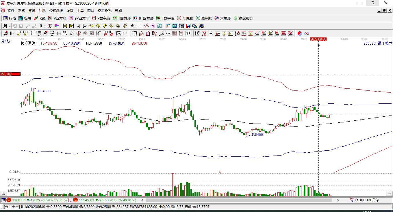 300020ST銀江目前大幅上漲12.22%,與所屬行業(yè)概念下股票形成聯(lián)動(dòng)效應(yīng)。300020ST銀江截止目前突破極反通道強(qiáng)勢通道線,根據(jù)贏家江恩極反通道趨勢工具展示,上方壓力位4.5878,下方支撐位