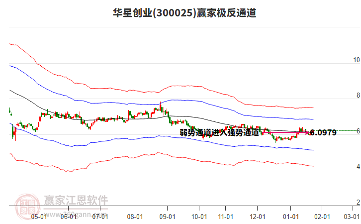 華星創(chuàng)業(yè)根據(jù)贏家江恩極反通道趨勢工具展示,上方壓力位6.0686,下方支撐位5.0692。華星創(chuàng)業(yè)處于贏家江恩空頭主線形態(tài),1月5日發(fā)出江恩筑底信號后,經(jīng)過24日,今日形成短期筑頂信號,短期多頭趨勢已
