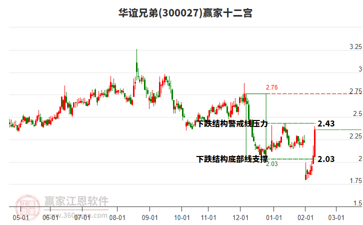華誼兄弟(300027)低開收陽線,受贏家十二宮下跌結(jié)構(gòu)警戒線壓制