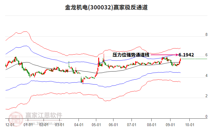當(dāng)天金龍機(jī)電最高價(jià)5.88上穿了贏家極反通道工具藍(lán)色外軌線,受到藍(lán)色外軌線強(qiáng)力壓制,最終收盤停留在在藍(lán)色外軌線與生命線上方的強(qiáng)勢(shì)通道區(qū)域。金龍機(jī)電近10個(gè)交易日漲幅6.17%。