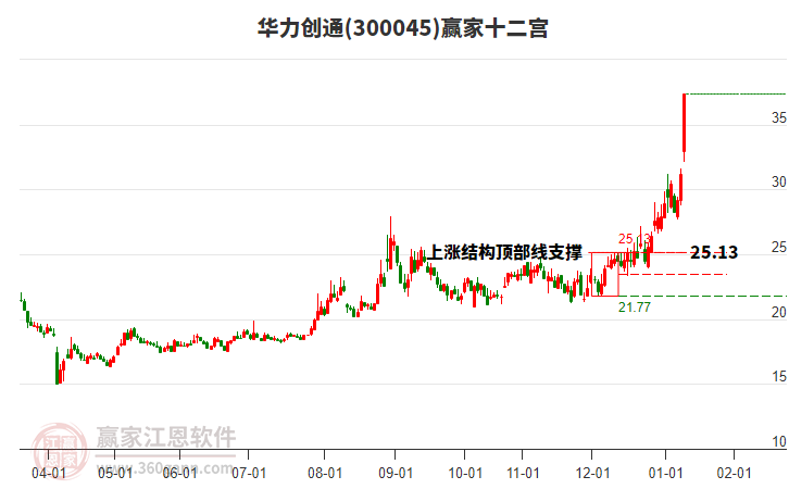 華力創(chuàng)通當(dāng)前股價(jià)突破江恩輪中輪大循環(huán)重要度數(shù):120度 近34個(gè)交易日漲幅74.7%