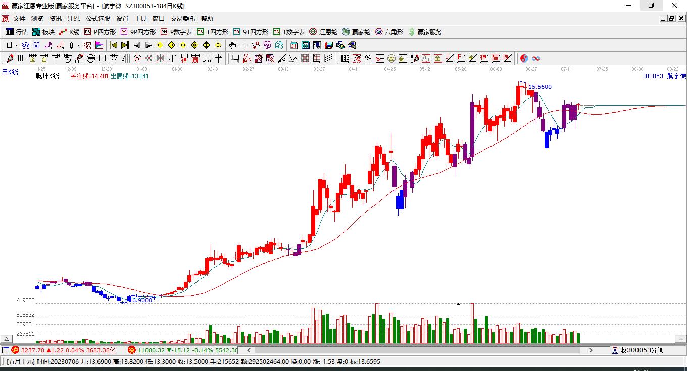周五航宇微300053大幅上漲13.1% 處入強勢通道區(qū)域