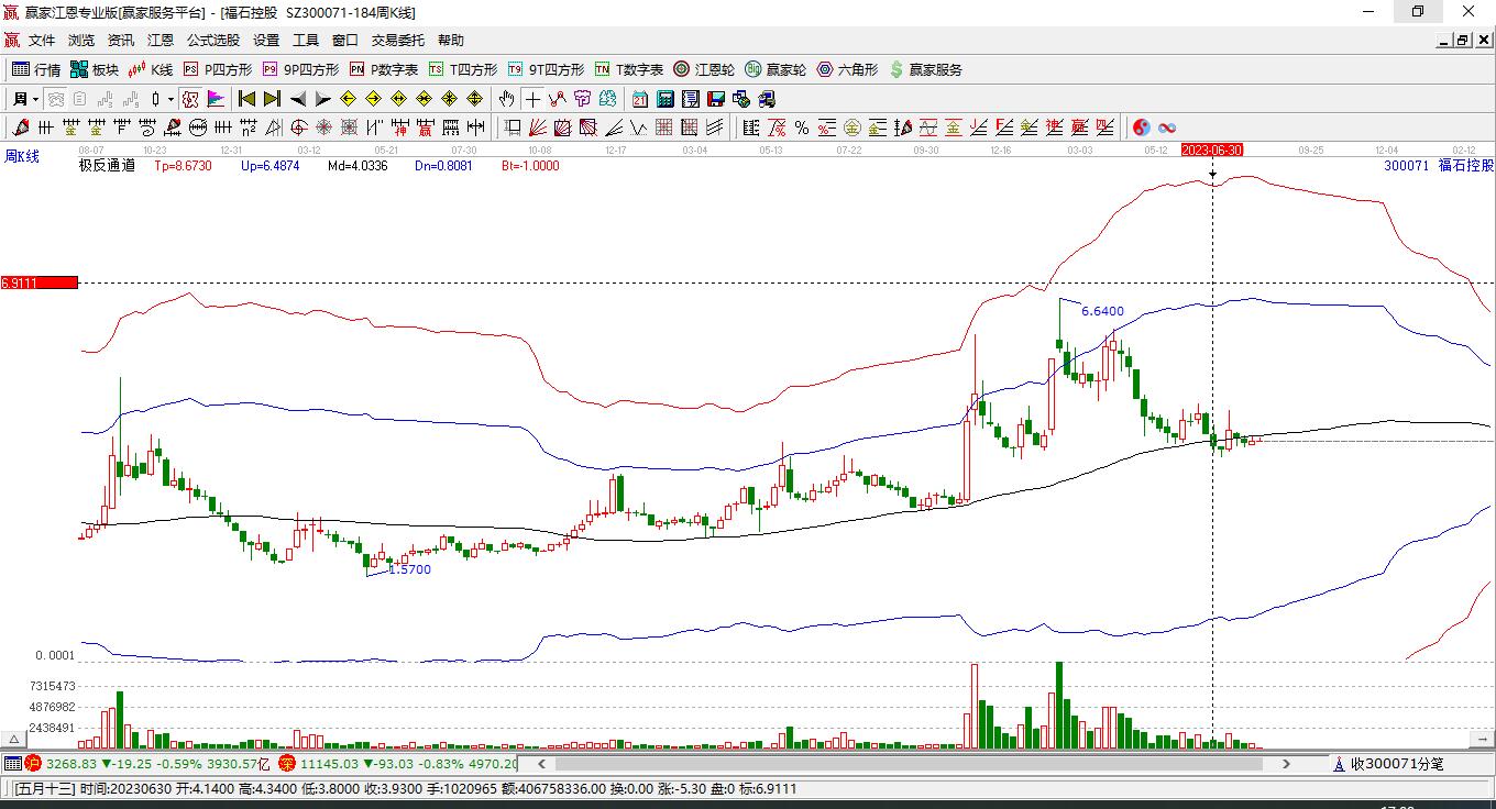 福石控股(300071)今日漲停,突破極反通道強(qiáng)勢通道線