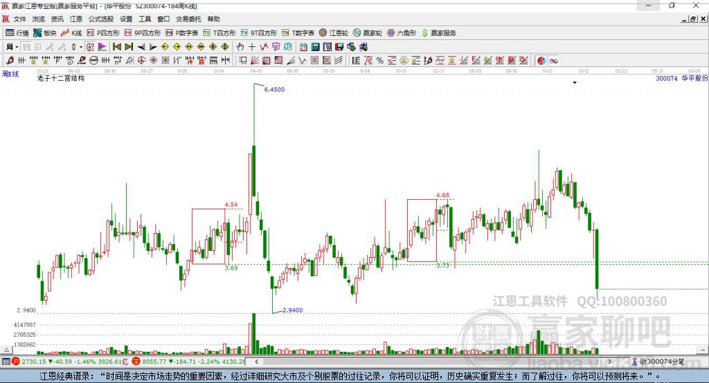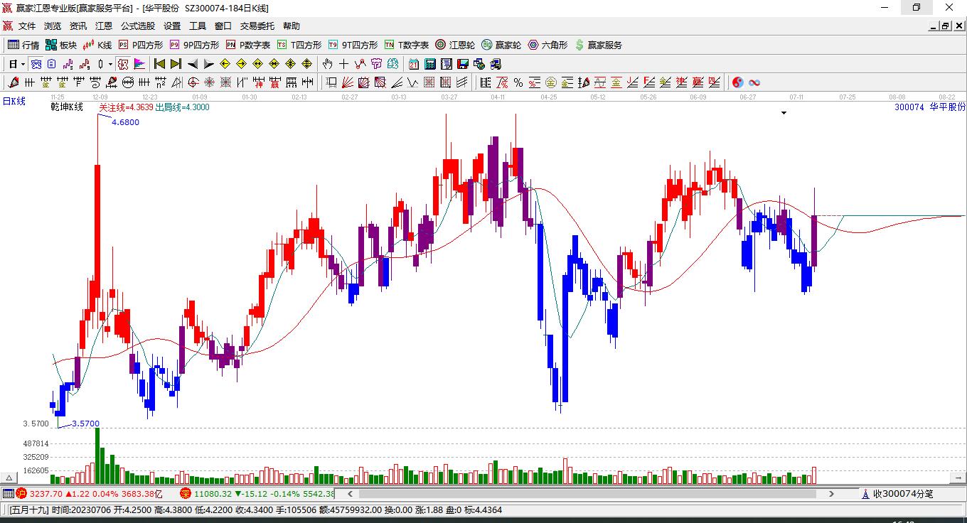 300074華平股份處于贏家江恩多頭主線形態(tài),從12月31日形成底分型后持續(xù)上攻,今日突破前高形成初次江恩筑底信號,中長期多頭趨勢依舊保持。300074華平股份根據(jù)贏家江恩極反通道趨勢工具展示,上方壓