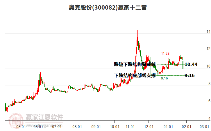 奧克股份處于贏家江恩多頭主線形態(tài),12月9日發(fā)出江恩筑頂信號(hào)后,經(jīng)過34日,今日再次發(fā)出江恩底分型并發(fā)出江恩筑底信號(hào),中長期多頭趨勢依舊保持。奧克股份根據(jù)贏家江恩極反通道趨勢工具展示,上方壓力位12.