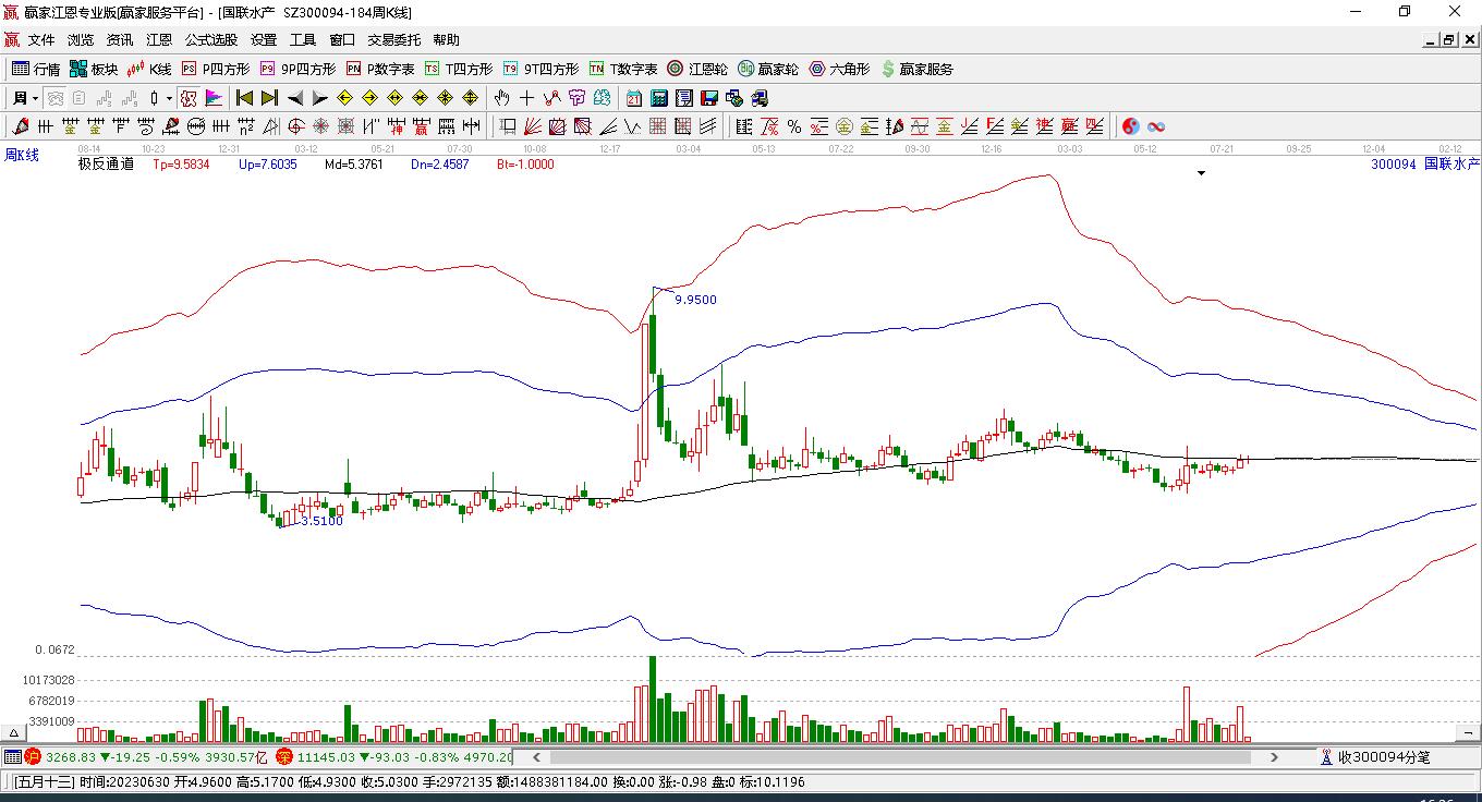 300094國聯(lián)水產(chǎn)處于贏家江恩多頭主線形態(tài),從12月31日形成底分型后持續(xù)上攻,今日突破前高形成初次江恩筑底信號,中長期多頭趨勢依舊保持。300094國聯(lián)水產(chǎn)根據(jù)贏家江恩極反通道趨勢工具展示,上方壓