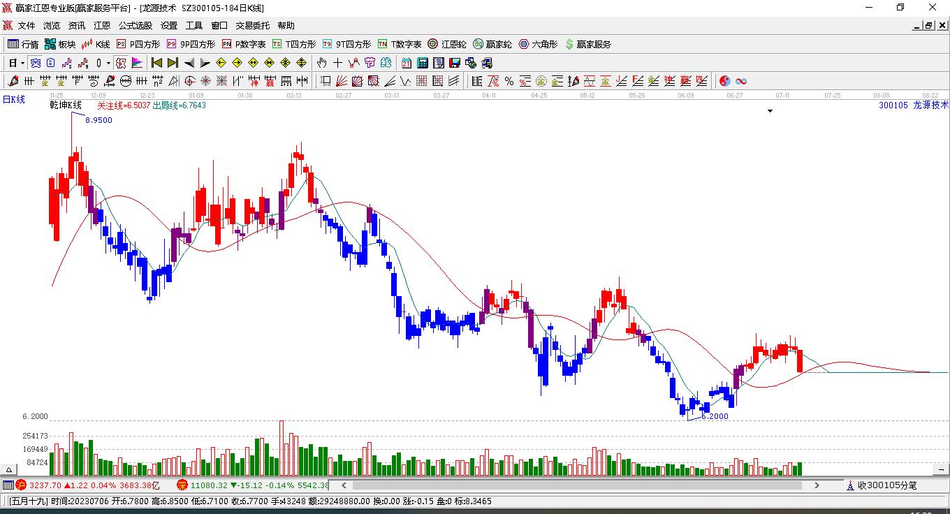 龍源技術(shù)根據(jù)贏家江恩極反通道趨勢工具展示,上方壓力位8.3078,下方支撐位7.5129。龍源技術(shù)處于贏家江恩多頭主線形態(tài),今日重心上移,短期持續(xù)上漲,從9月23日形成中期底分型后,行情經(jīng)歷一波上漲,