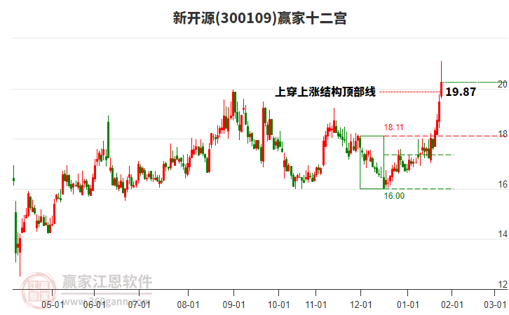 新開源(300109)根據(jù)贏家江恩極反通道趨勢(shì)工具展示,上方壓力位20.1547,下方支撐位17.6568。新開源(300109)處于贏家江恩多頭次主線形態(tài),1月8日發(fā)出江恩筑底信號(hào)后,經(jīng)過(guò)33日,今