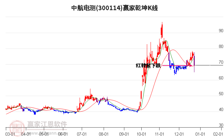 當(dāng)天中航電測300114上穿生命線 以上影中陽線收盤