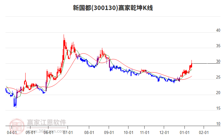 新國都(300130)下跌途中收上影陽十字星,近35日下跌31.69%