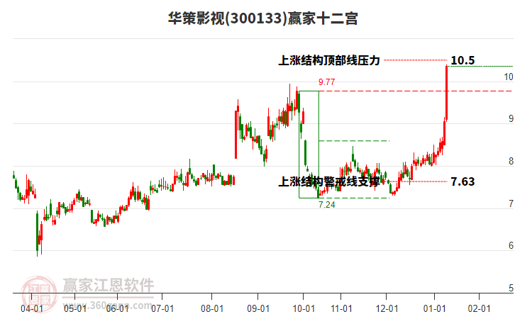華策影視處于贏家江恩多頭次主線形態(tài),12月11日發(fā)出江恩筑底信號后,經(jīng)過56日,今日形成短期筑頂信號,短期多頭趨勢已被破壞,中長期多頭趨勢依舊保持。華策影視根據(jù)贏家江恩極反通道趨勢工具展示,上方壓力位