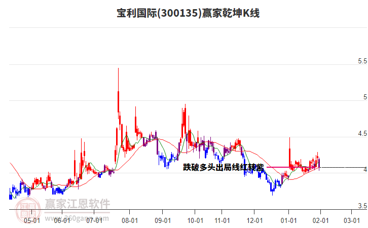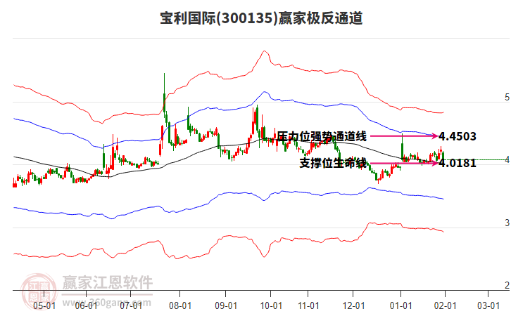 寶利國(guó)際處于贏家江恩空頭主線形態(tài),從1月29日形成頂分型后持續(xù)下跌,今日形成短期初次筑頂信號(hào),短期多頭趨勢(shì)已被破壞,中長(zhǎng)線均在空頭下跌趨勢(shì)中。寶利國(guó)際根據(jù)贏家江恩極反通道趨勢(shì)工具展示,上方壓力位4.0