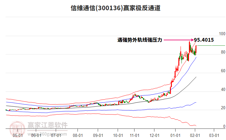 依據贏家江恩系統(tǒng)趨勢工具極反通道分析判斷信維通信300136運行在生命線以下弱勢區(qū)域,根據規(guī)則該股短線輕倉參與,股價跌至弱勢外軌線后波段再結合其它工具信號建倉。應用口訣是:生命線上強勢走,生命線下難抬頭;紅黃兩條外軌線,壓力支撐顯勢頭。