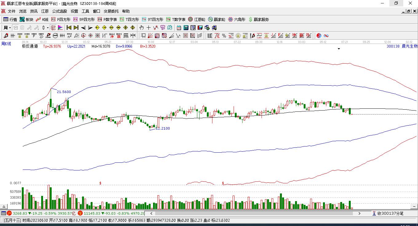 當(dāng)天300138晨光生物最高價(jià)14.09挑戰(zhàn)了贏家極反通道工具藍(lán)色外軌線,受到藍(lán)色外軌線強(qiáng)力壓制,最終收盤停留在在藍(lán)色外軌線與生命線上方的強(qiáng)勢(shì)通道區(qū)域。300138晨光生物近10個(gè)交易日漲幅9.89%