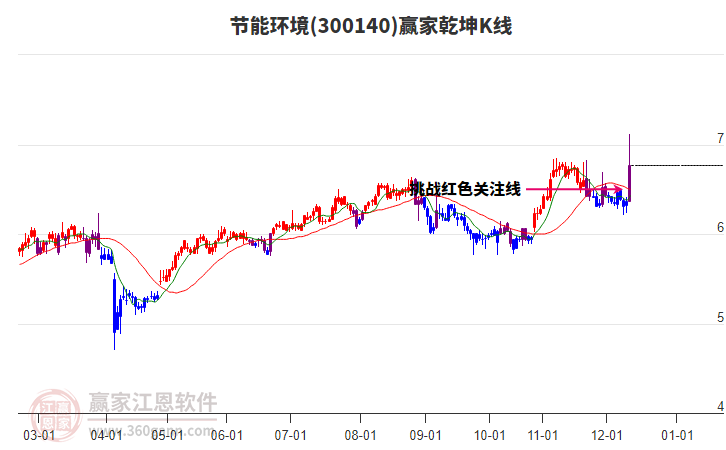 周二節(jié)能環(huán)境300140挑戰(zhàn)藍(lán)色外軌線 以上影中陽線收盤