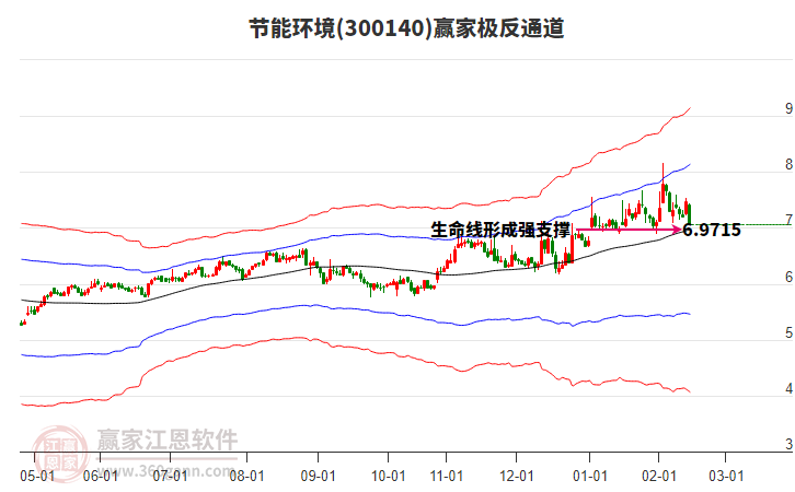 周一節(jié)能環(huán)境300140最高價(jià)7.55挑戰(zhàn)了贏家極反通道工具藍(lán)色外軌線,受到藍(lán)色外軌線強(qiáng)力壓制,最終收盤停留在在藍(lán)色外軌線與生命線上方的強(qiáng)勢通道區(qū)域。節(jié)能環(huán)境300140近10個(gè)交易日漲幅14.31%