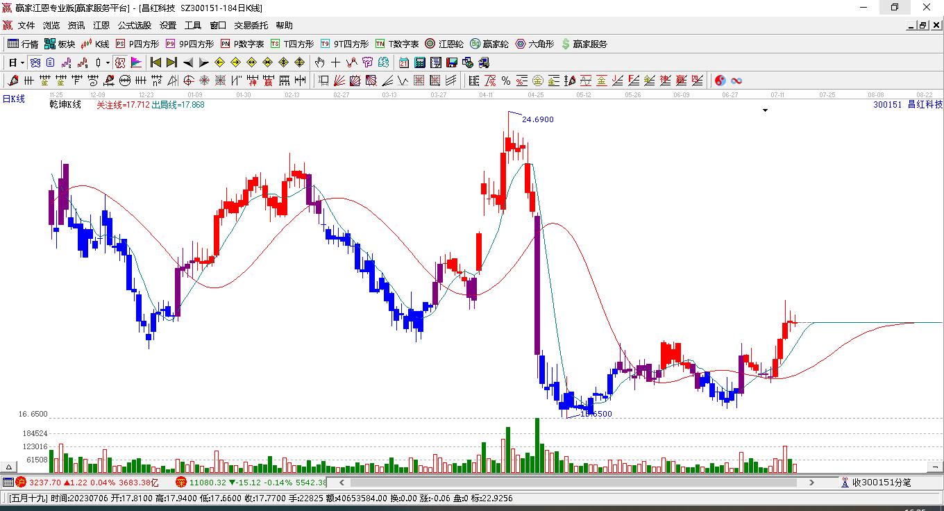 依據(jù)贏家江恩乾坤K線工具展示,本周K線以陽線收盤,目前K線處于紅色區(qū)域,位于關(guān)注線上方,依據(jù)贏家江恩乾坤K線多空模型,目前多頭出局線對(duì)當(dāng)前股價(jià)形成支撐,短期看多。后市如若股價(jià)跌破多頭出局線,則可能形成短期回調(diào)。