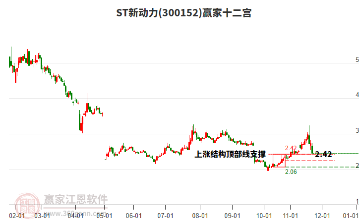 2月13日股價處于2025年12月5日形成的下跌結(jié)構(gòu)底部線2.14上方區(qū)域,該股自近期高點3.08跌至今日2.32,跌幅32.76%。依據(jù)贏家十二宮多空能量守恒規(guī)則,若股價不能有效站穩(wěn)底部線,下方多空能量平衡位需結(jié)合前方贏家十二宮結(jié)構(gòu)尋找。