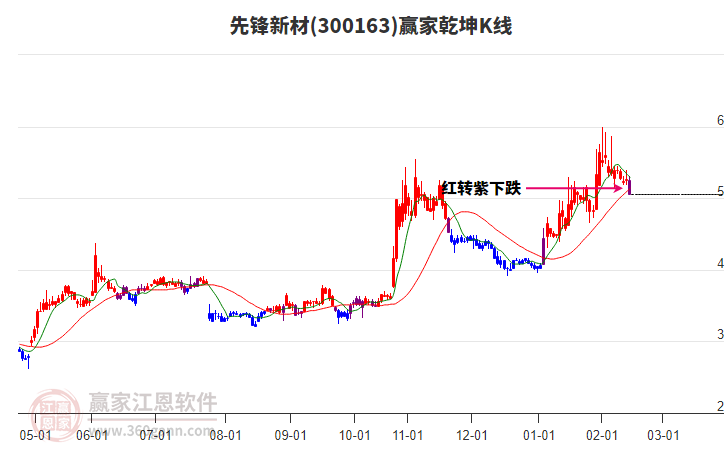 先鋒新材(300163)低開收上下影大陽線,處于乾坤K線紅色上漲趨勢