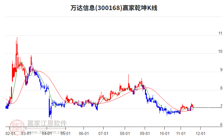 萬達信息處于贏家江恩空頭主線形態(tài),從11月18日形成頂分型后持續(xù)下跌,今日形成短期初次筑頂信號,短期多頭趨勢已被破壞,中期多頭反彈趨勢延續(xù),但長期處于下跌中。萬達信息根據(jù)贏家江恩極反通道趨勢工具展示,