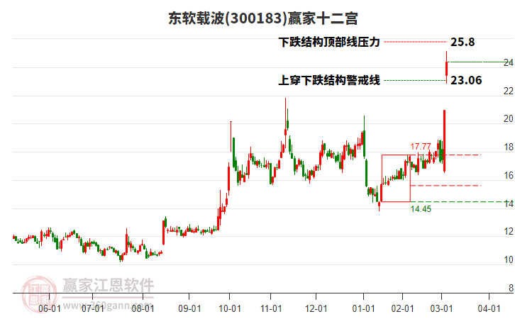 東軟載波(300183)根據(jù)贏家江恩極反通道趨勢(shì)工具展示,上方壓力位16.9277,下方支撐位15.3555。東軟載波(300183)處于贏家江恩空頭中期反彈形態(tài),從1月23日形成頂分型后持續(xù)下跌,重