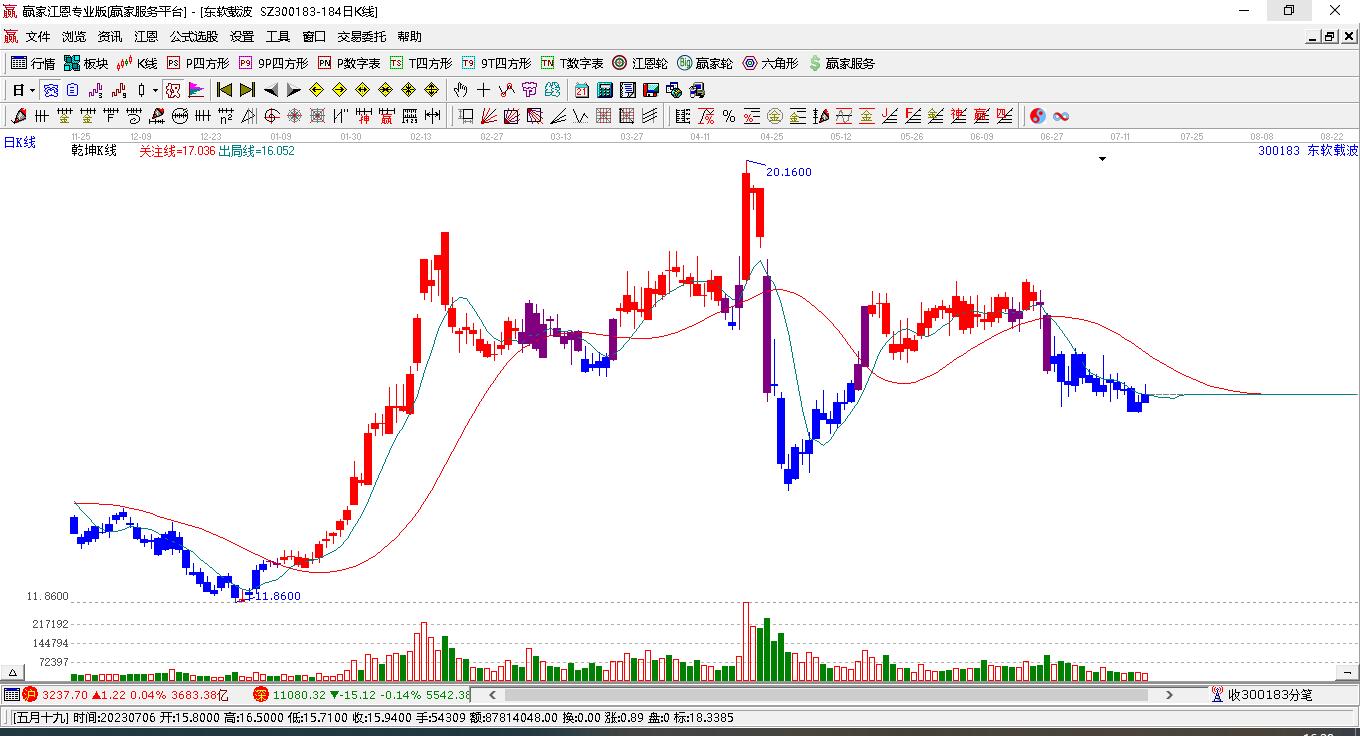 300183東軟載波根據贏家江恩極反通道趨勢工具展示,上方壓力位16.9269,下方支撐位15.3614。300183東軟載波處于贏家江恩空頭中期反彈形態(tài),從1月23日形成頂分型后持續(xù)下跌,重心下移,