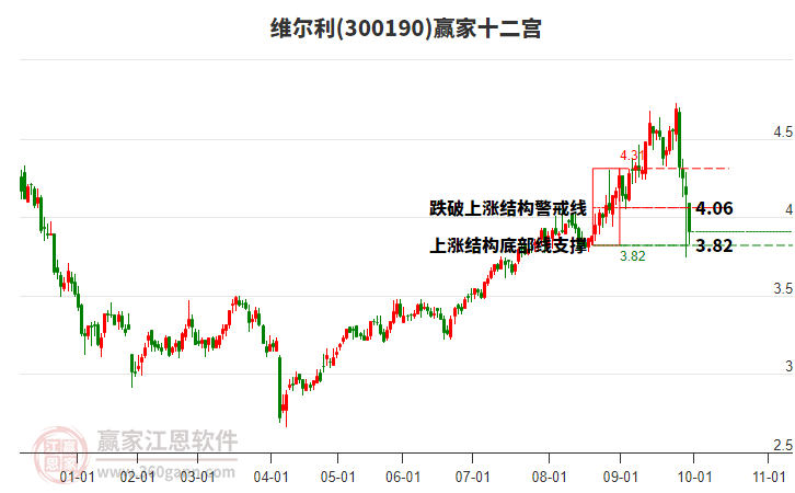 300190維爾利處于贏家江恩多頭次主線形態(tài),從12月10日形成頂分型后持續(xù)下跌,重心下移,今日跌破前低形成短期初次筑頂信號(hào),短期多頭趨勢(shì)已被破壞,中長(zhǎng)期多頭趨勢(shì)依舊保持。維爾利今日高開(kāi)0.01元,截