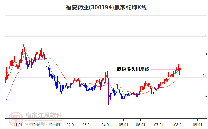 300194福安藥業(yè)處于贏家江恩空頭中期反彈形態(tài),從1月26日形成頂分型后持續(xù)下跌,重心下移,今日跌破前低形成短期初次筑頂信號,短期多頭趨勢已被破壞,中期多頭趨勢延續(xù),但長期處于下跌中。300194福