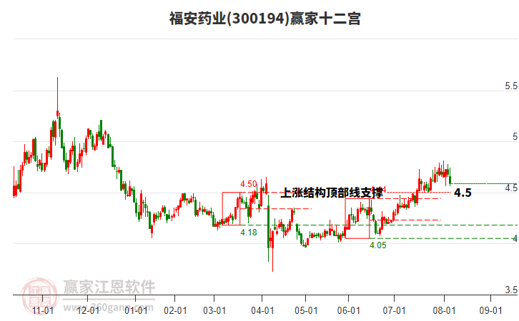 300194福安藥業(yè)處于贏家江恩空頭主線形態(tài),今日重心持續(xù)下移,短期延續(xù)下跌趨勢,12月8日發(fā)出中期江恩筑底信號后,經(jīng)過56日,今日形成中期筑頂信號,注意風險規(guī)避。300194福安藥業(yè)根據(jù)贏家江恩極反