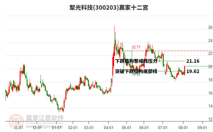 300203聚光科技處于贏家江恩多頭中期回調(diào)形態(tài),10月30日發(fā)出江恩筑頂信號后,經(jīng)過40日,今日再次發(fā)出江恩底分型并發(fā)出江恩筑底信號,中期多頭反彈趨勢延續(xù),但長期處于回調(diào)中。300203聚光科技根據(jù)