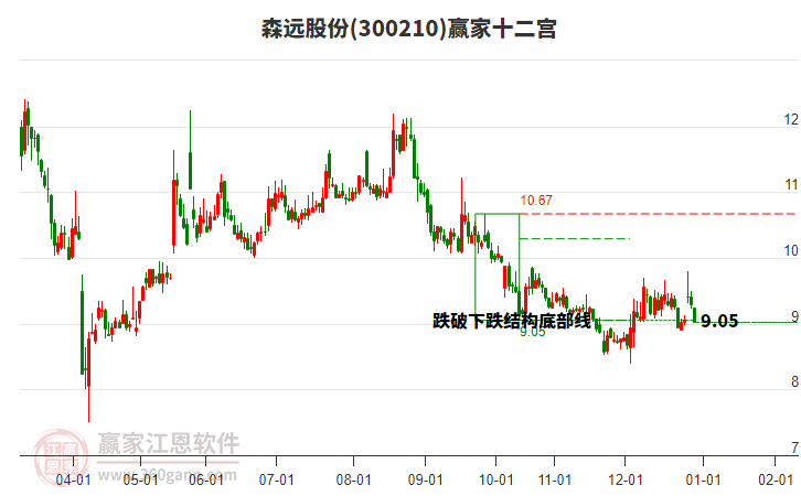 2月13日股價(jià)位于前期2025年10月17日形成的下跌結(jié)構(gòu)警戒線10.29與底部線9.05之間,股價(jià)自近期低點(diǎn)2月5日9.48元上攻至今日10.0,漲幅5.49%。依據(jù)贏家十二宮多空能量守恒規(guī)則,下跌結(jié)構(gòu)警戒線是多空能量平衡點(diǎn),突破或跌破往往意味著平衡打破。若近期股價(jià)能有效突破警戒線10.29,則多方能量主導(dǎo)有望上攻,頂部線10.67尋找新的多空能量平衡位。如未能突破站穩(wěn)警戒線,空方能量可能主導(dǎo),則向下尋底部線9.05尋找多空能量平衡位。