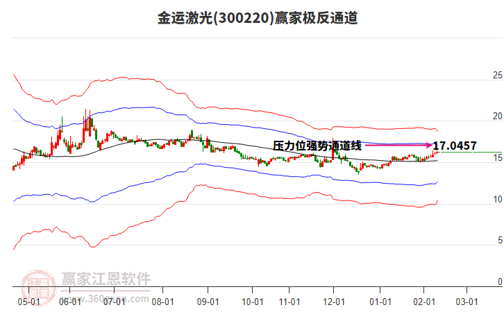 金運(yùn)激光處于贏家江恩多頭中期回調(diào)形態(tài),從1月29日形成底分型后持續(xù)上攻,今日突破前高形成初次江恩筑底信號,中長期多頭趨勢依舊保持。金運(yùn)激光根據(jù)贏家江恩極反通道趨勢工具展示,上方壓力位17.2381,下